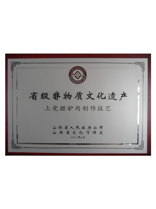 《本草綱目》第五十卷記載有:“驢肉味甘、無毒、解心煩、止風(fēng)狂、能安心氣、補(bǔ)血益氣、治遠(yuǎn)年勞損”的作用,尤其對(duì)失眠、健忘、眩暈、營養(yǎng)不良、貧血癥有獨(dú)特療效。上黨臘驢肉是山西長治市的漢族傳統(tǒng)名吃,其肉質(zhì)肥而不膩、瘦而不柴、香味四溢、回味無窮。早在明代,臘驢肉就已馳名于上黨和晉南地區(qū),產(chǎn)品遠(yuǎn)銷北京、天津、南京等南北名城。臘驢肉與當(dāng)?shù)氐臎龇?、酥火燒被稱為潞安府(長治古稱潞安府)三寶。